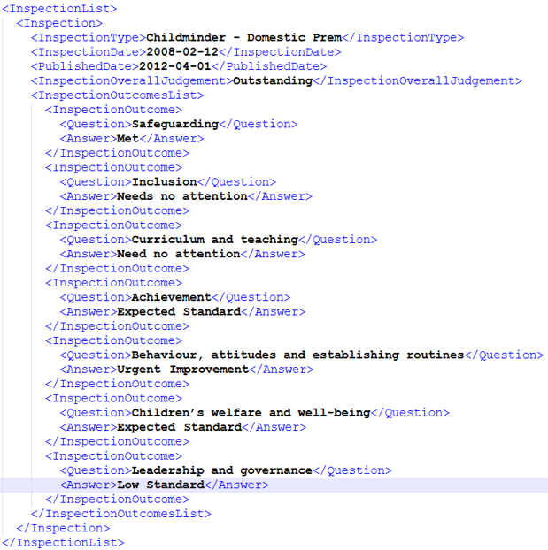 The XML generated for the FID sites has been updated to include the new Ofsted information.