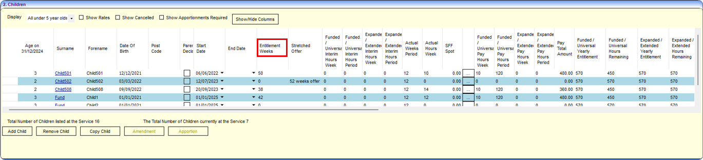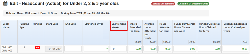 - New Entitlement Weeks column added to Headcount (Actual) for Under 2, 2 & 3 year olds screen.