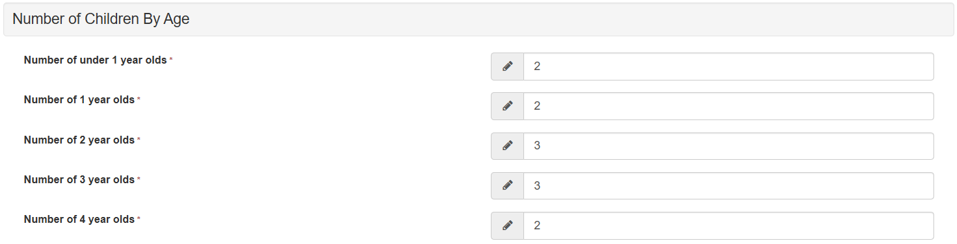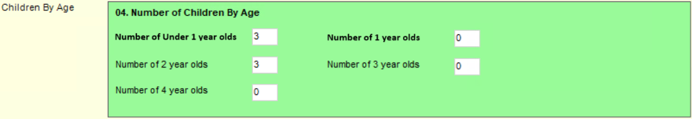 - v4 | Focus | Early Years | Census Return | Census Return Batch Details | Panel 02. Providers | Service and Details | 0.2 Census Return Establishment Details | Children By Age