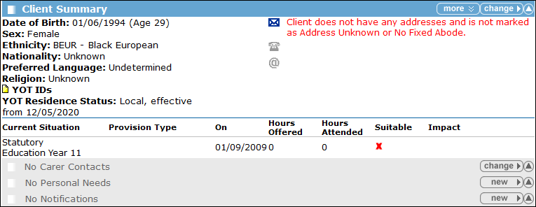 Youth Justice – YJB Statutory Change: KPIs 3-5 New section added to YJ case view called Personal Needs (3.82)